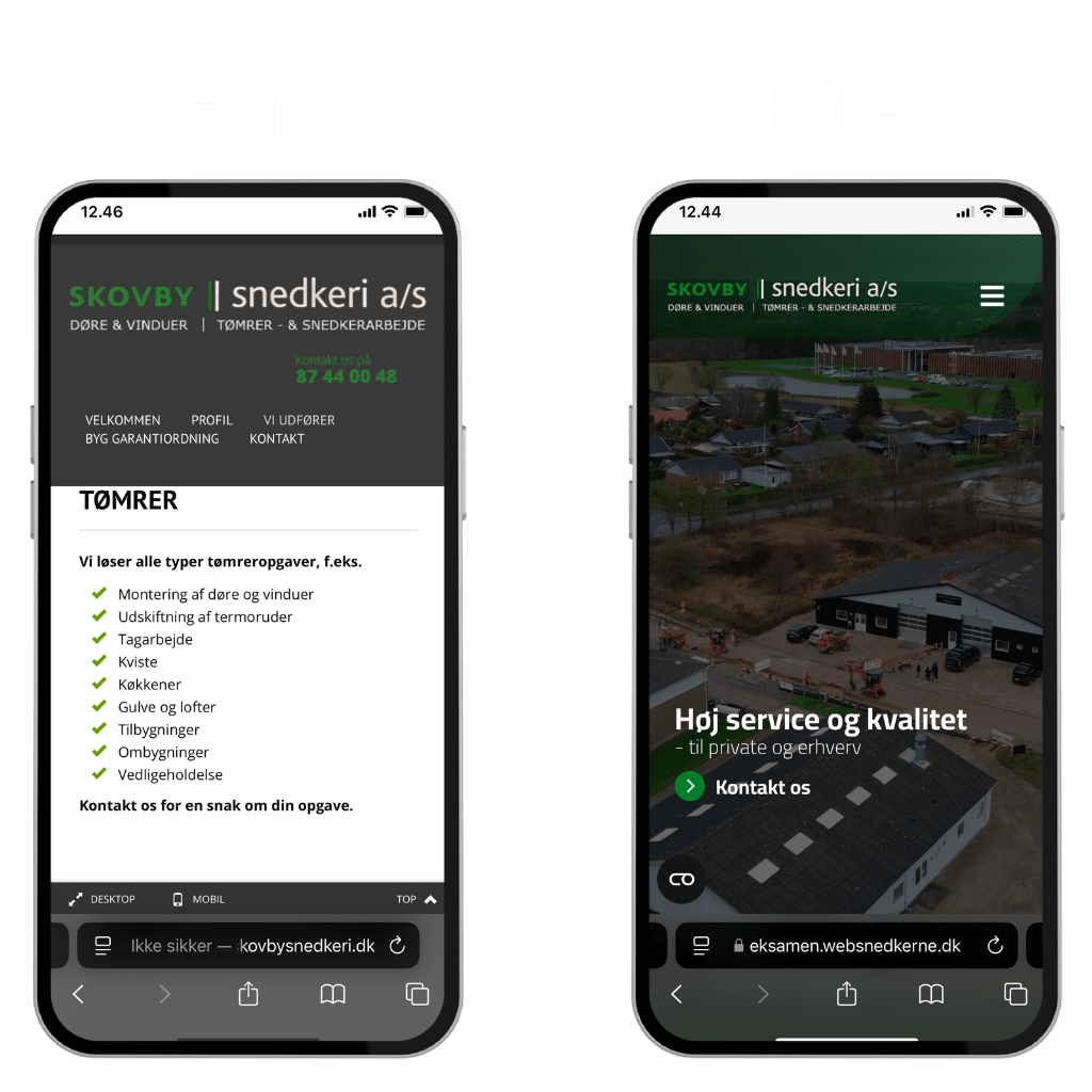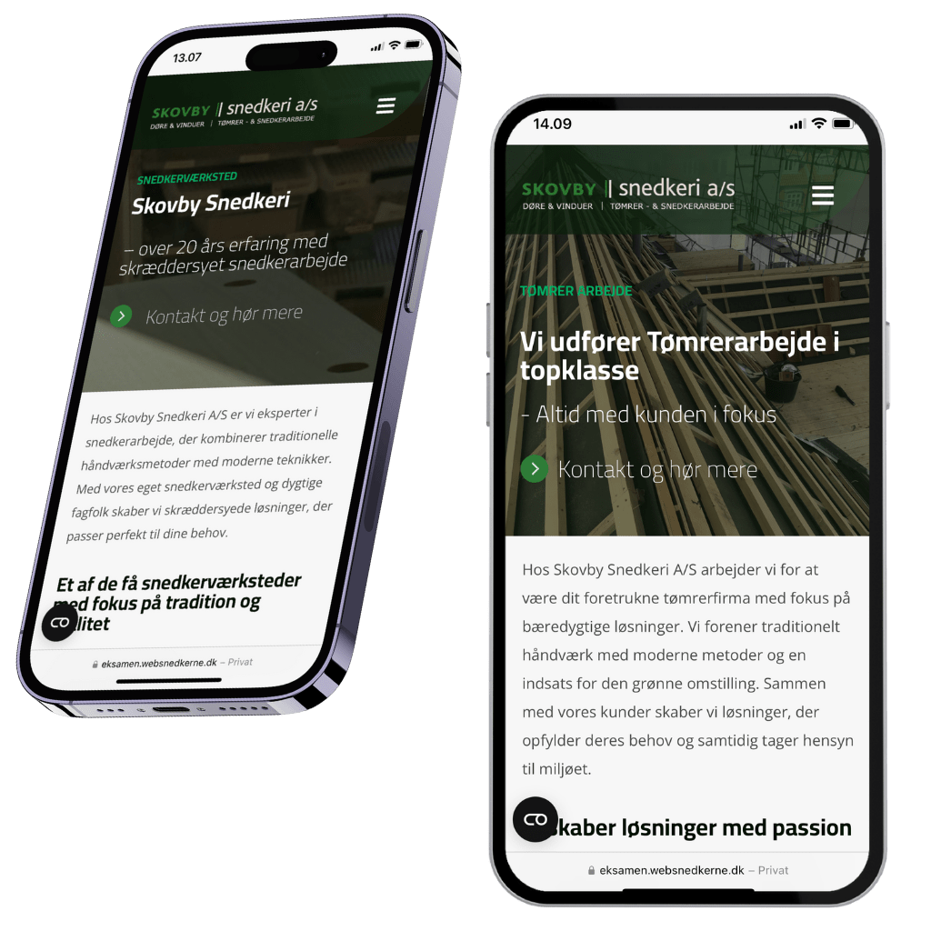 Vi skabte et responsivt og brugervenligt design, der præsenterer Skovby Snedkeris visuelle identitet og services på en indbydende måde.